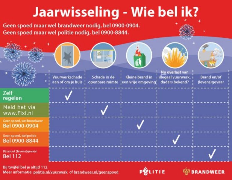 - Kijk op de website van de politie voor uitgebreide informatie over vuurwerk.